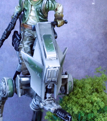 J'ai donc appliqué un gris assez classique (neutral grey vallejo), sur l'ensemble de la monture, éclairci et assombri, puis j'ai réalisé un détourage des volumes (lining + surlignage).
